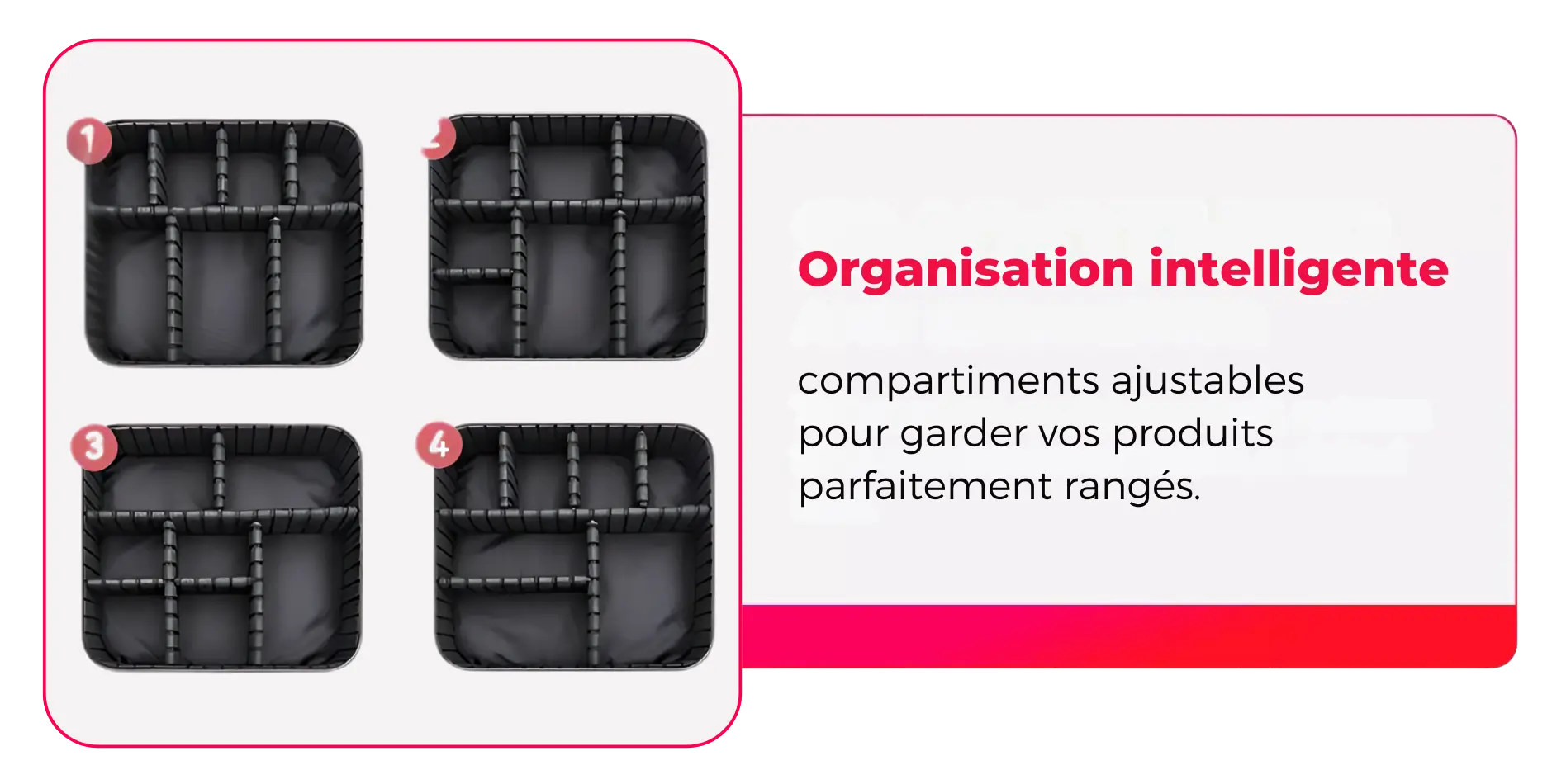 Oui. La trousse est dotée de cloisons renforcées et amovibles, qui protègent vos produits contre les chocs pendant vos déplacements.