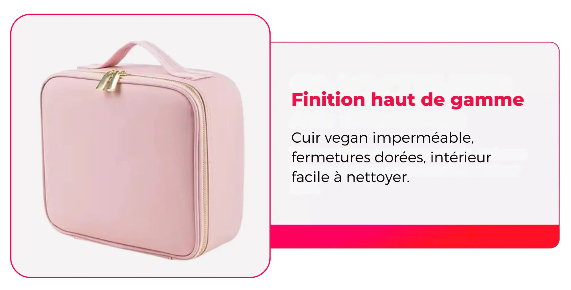 Oui. L’intérieur est conçu en matériau imperméable et lavable, pour que vous puissiez nettoyer facilement les traces de maquillage ou les petites éclaboussures.