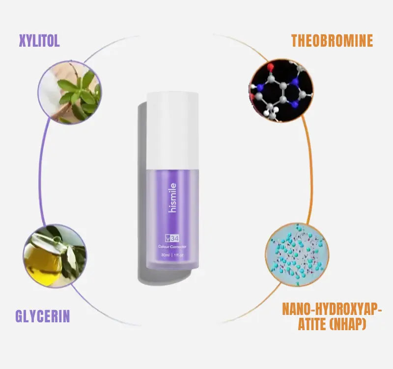 La correction de couleur repose sur le cercle chromatique, où le violet et le jaune sont des couleurs opposées. Sur le même principe que le shampoing violet neutralise les reflets jaunes des cheveux, appliquer du violet sur vos dents permet de neutraliser instantanément les tons jaunes et de révéler un sourire visiblement plus blanc. Ingénieux, non ?