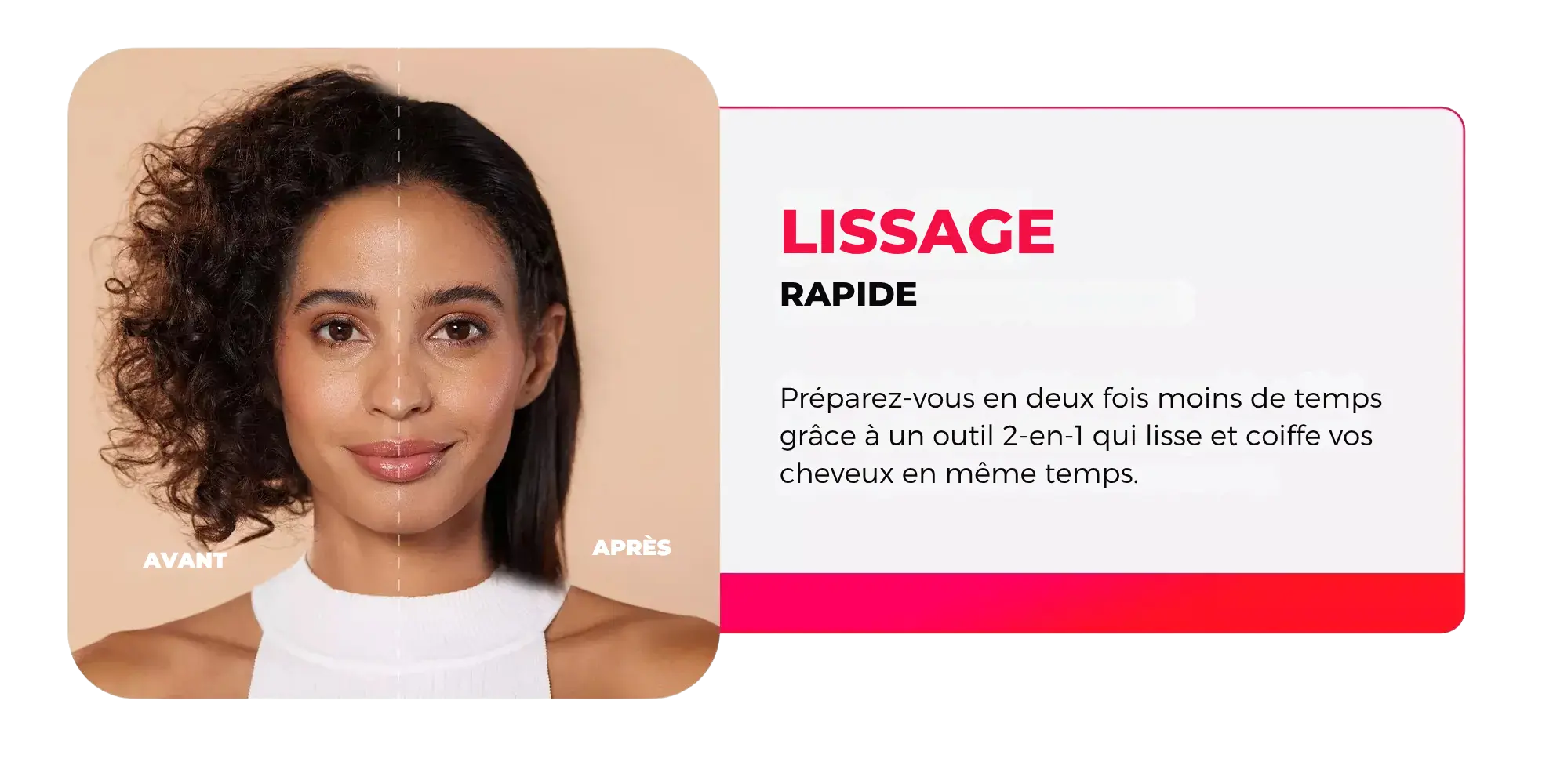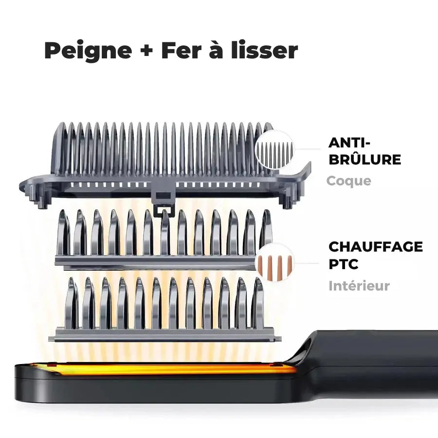 Le Lisseur Brésilien combine les avantages d’un fer à lisser traditionnel et d’un peigne chauffant. Il dispose en plus d’une protection anti-brûlure, pour plus de sécurité et de polyvalence.